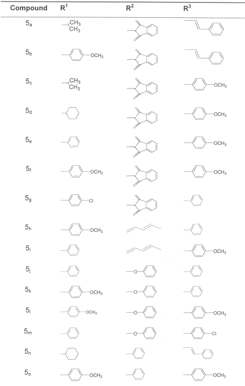 Table 1: Substituents of test compounds 5a-50 in 2-Azetidinone ring.