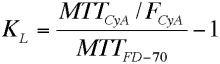 Statistical moment theory (16) was used for estimation of the recovery ratio in the perfusate (F) and mean transit time (MTT) and volume of distribution (V) in the liver for both CyA and the vascular marker FD-70 and for the liver tissue distribution ratio (KL ) of CyA using the following equations: