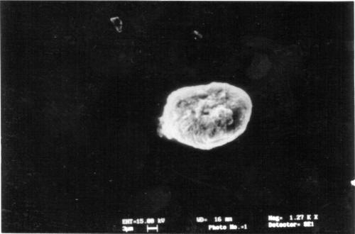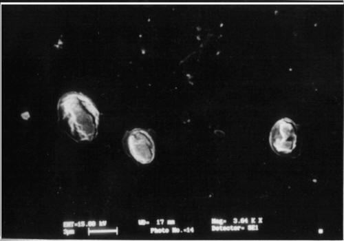 The capsules also exhibit a somewhat rough surface texture. This may be characteristic of the polyelectrolyte film, although some residual core is present in the capsules. Within the limit of resolution of the SEM technique, no holes or traces of rupture are identified in the capsules. This type of observation was in conformity with the study of Donath et al., (9) for Melamine Formaldehyde core coated capsules of Polystyrene sulphonate/PAH.