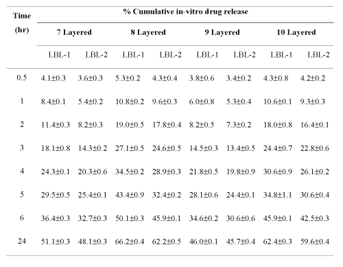 Table 1: Layer-by-layer percent cumulative in vitro drug release from formulation in STF (pH 7.4) (n=3).