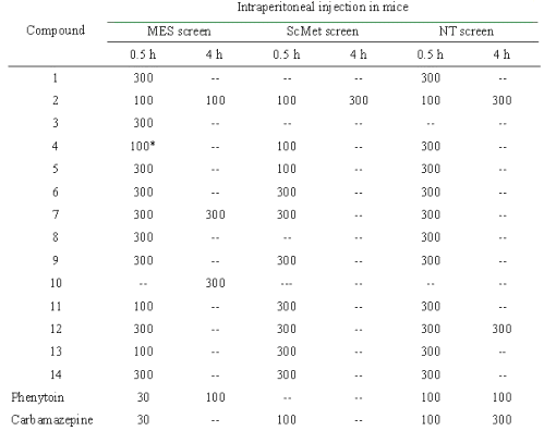 Table 2: Anticonvulsant evaluation of compounds in the MES, ScMet and NT screens.