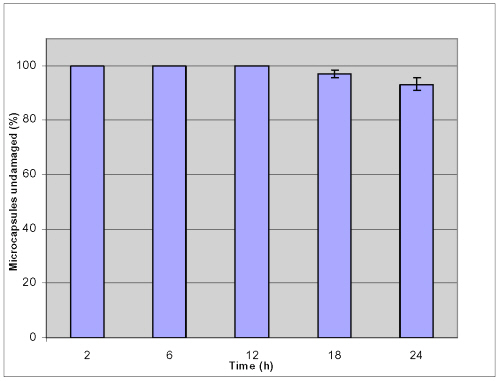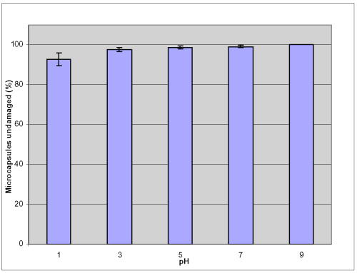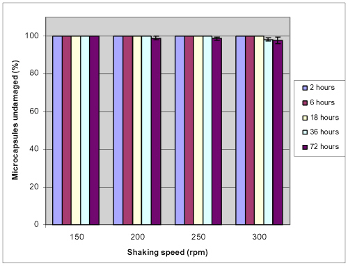 Figures 5 summarized the microcapsules undamaged percentage in various pH conditions after shaking for 24 hours at 250 rpm at 37.2°C.