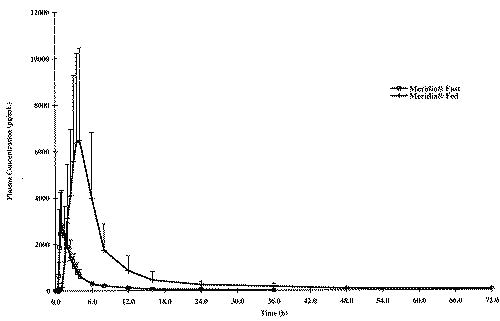Figure 4 presents the mean plasma profiles of sibutramine and its metabolites under fasting conditions while these profiles are displayed in Figure 5 under fed conditions.