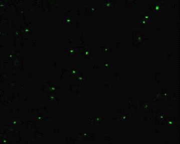We observed an error percent of 2.4 in our epifluorescent count estimation using FluoSpheresR - carboxylate modified 1.0 mm diameter blue fluorescent microspheres. E. Coli when used as a negative control is not stained by oligreen (figure 1b) but can be visualized with propidium iodide, acridine orange or gold nucleic acid stain that binds double stranded DNA (data omitted) . This result indicated that the Oligreen ssDNA reagent was specifically detecting M13 and not contaminating bacteria or their components.