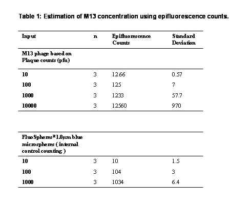 Table 1: Estimation of M13 concentration using epifluorescence counts.