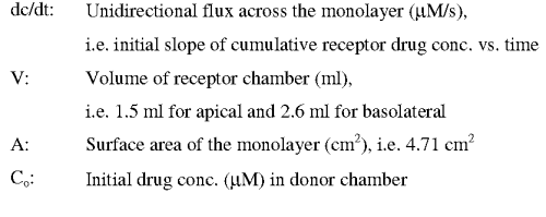 Calculation of apparent permeability coefficient (P app ) for transport studies. P app , expressed in cm/sec, was calculated by the previously described equation (19).
