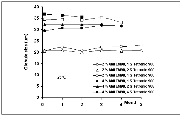 and 1 or 2% poloxamine 908 were the most stable systems. The globule size of