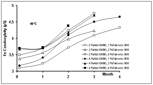 The conductivity increased and the viscosity of systems decreased during time.
