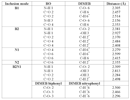 Table 3: Distance (Å) between some functions of RO and DIMEB able to form hydrogen bonds.