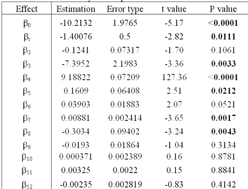 This statistical analysis determines the values of all bx and their significance in equation 4.