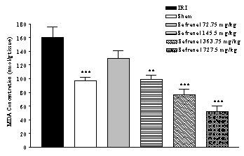 which saline solution was given intraperitoneally. In groups 3-6, safranal (727.5