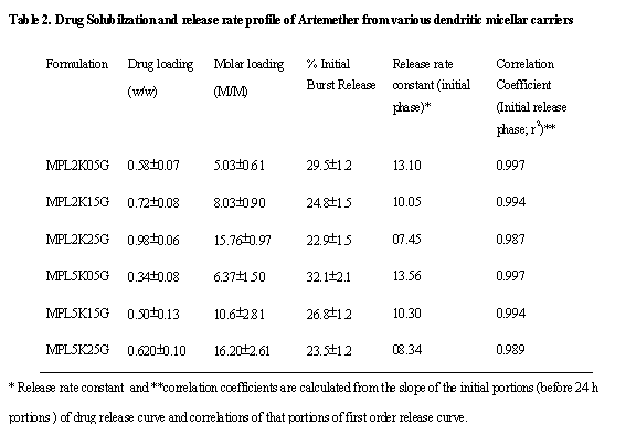 Dendritic Nanoparticulate Systems for Delivery of Artemether. STP Pharm. Sc.