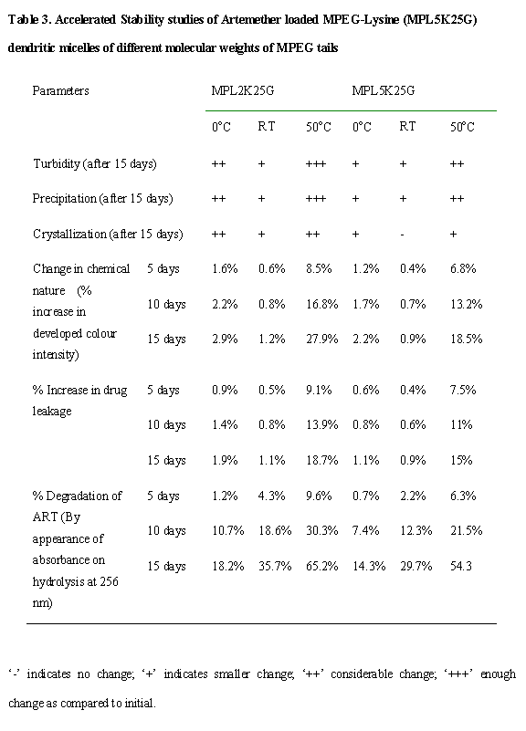 delivery of an antimalarial drug, Artemether (ART). Methoxy polyethylene glycol
