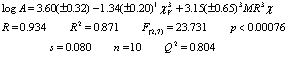 Figures 3 and 4 show the plots of the predicted vs. observed values with equation 8, and the graph of residuals vs. deleted residuals.