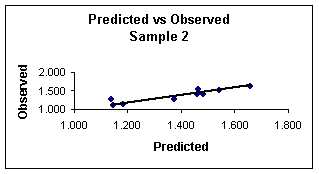 vs. observed values calculated with equation 8 for sample 2.
