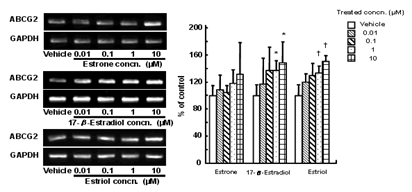 17-β-estradiol and estriol) on the expression level of ABCG2 mRNA by