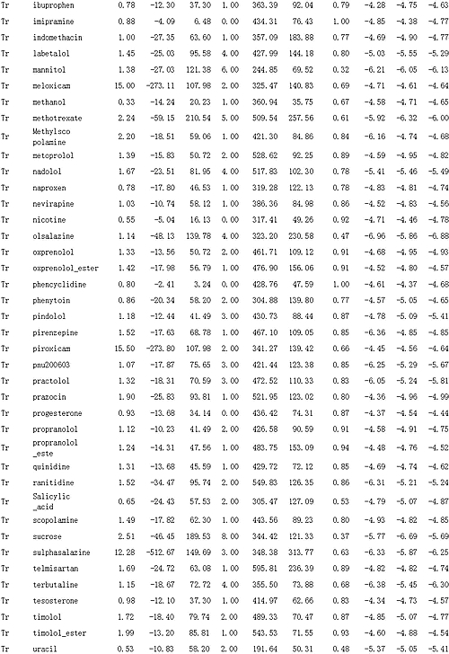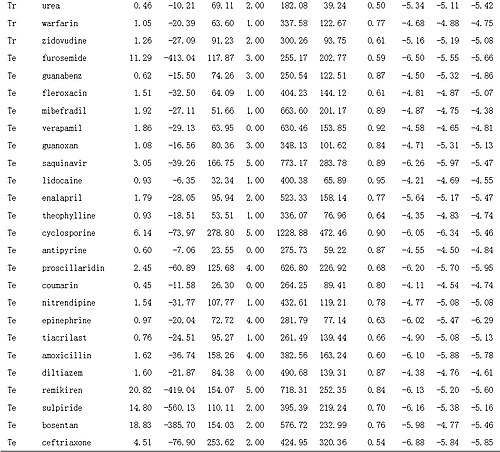 Table 2: Data of Experimental Apparent Permeability, Molecular Descriptors, and Predicted Results