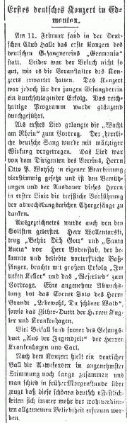 the number of persons of German origin in the Edmonton area in the 1880s was still very small. According to the Canadian Census of 1885, there were only 13 persons of German origin in