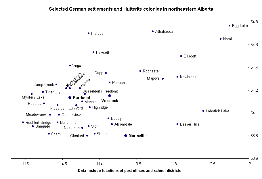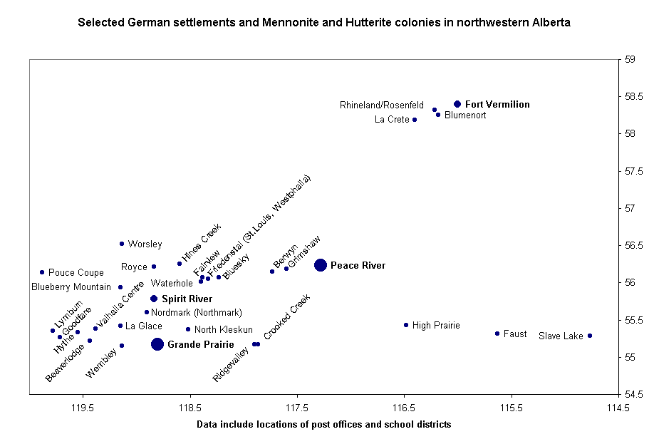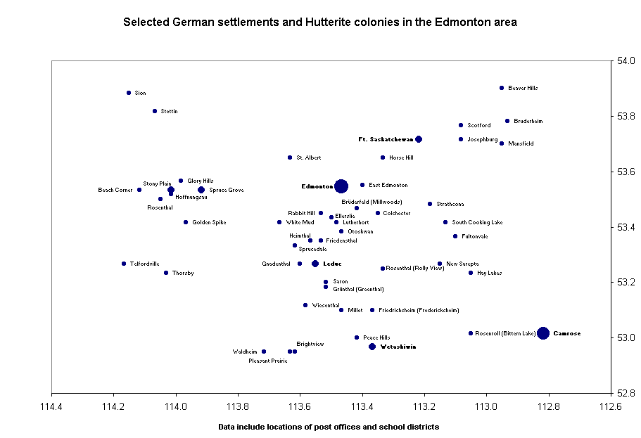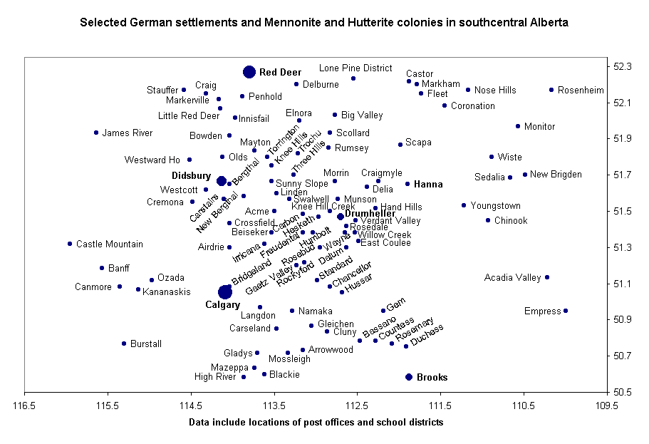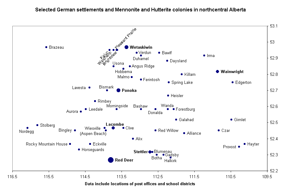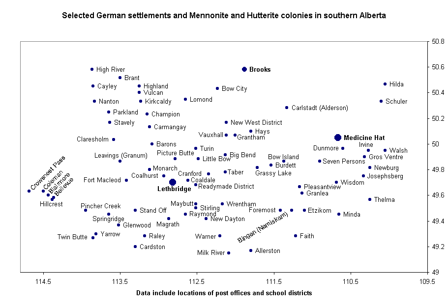 German settlements and Mennonite and Hutterite colonies in Alberta