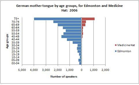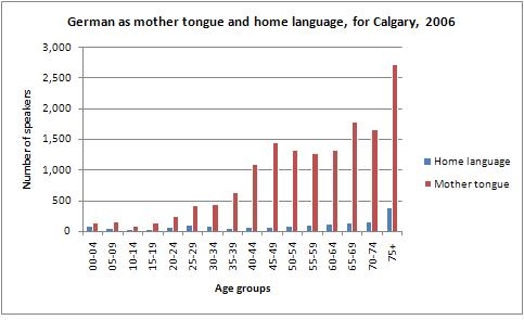 language and very large numbers of older Calgarians with German mother tongue, clearly the immigrant generation.