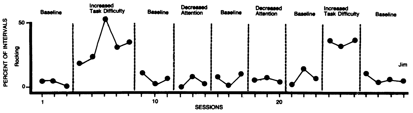 • Jim’s rocking increased as task difficulty increased, but his rocking was not affected by attention