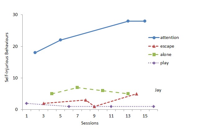 • Jay’s data shows his self-injurious behaviour is increased only by attention: