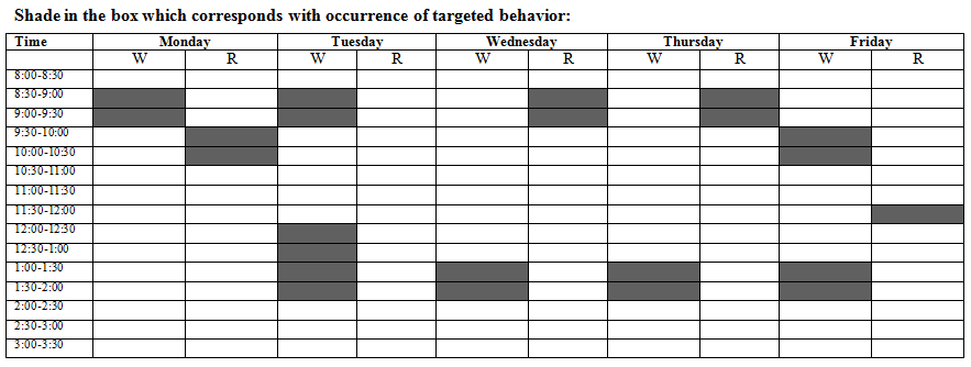 - ___________ analysis: recording period is divided into intervals; every half hour, if the behaviour has occurred, one cell of the grid is shaded in