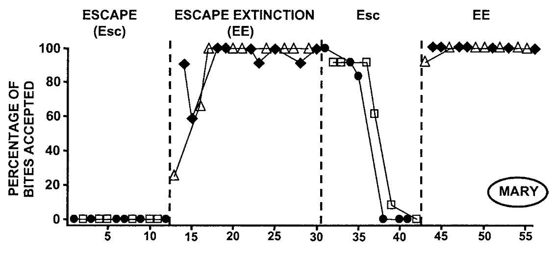 • Mary’s food acceptance increased from 0% in baseline to 100% compliance