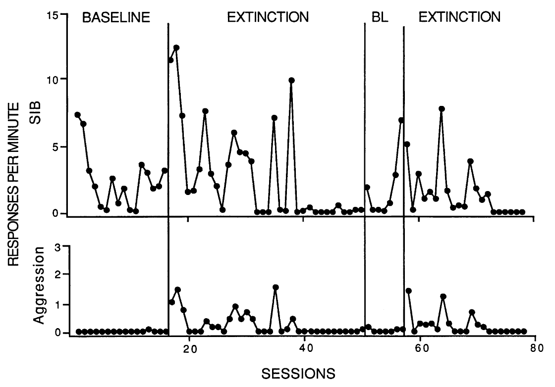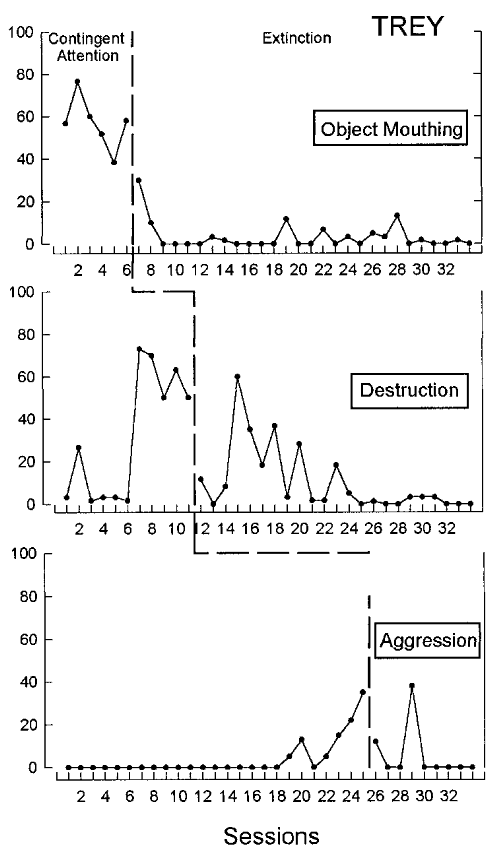 • multiple-baseline across behaviour design, in which extinction (withdrawing social attention) was applied