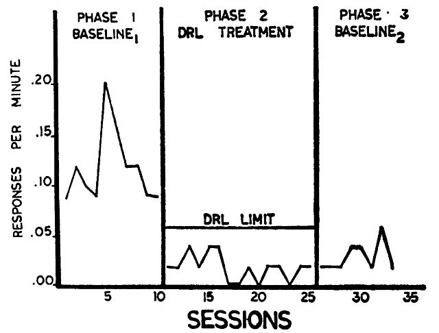 • in spaced-responding DRL 60": no reinforcers are delivered (interval resets with each response)
