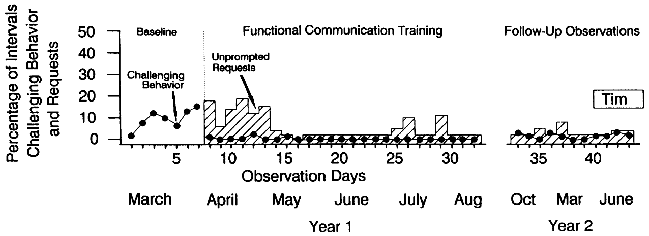 • Tim’s behaviour generalized to new situations and was maintained over time