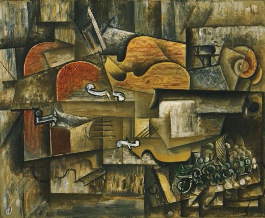 e.g., Violin and Grapes (Pablo Picasso, 1912) applies similarity, proximity, and closure