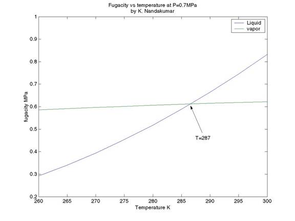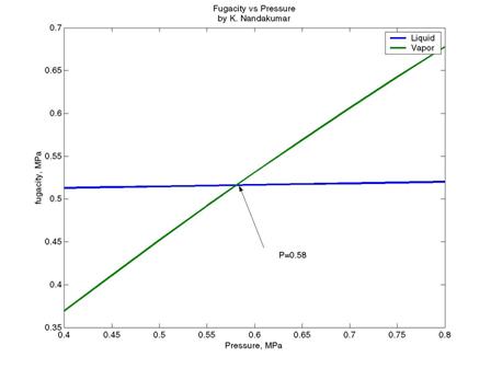 MATLAB code was modified to determine fugacities over a range of pressures. Again, the thermophysical properties given at the end of the