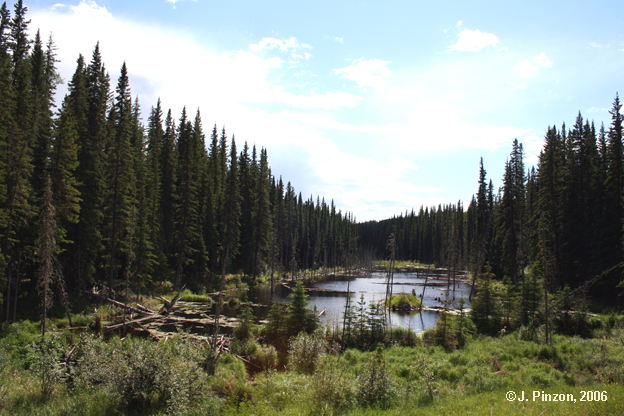 Pure deciduous stands are early successional stages consisting of more than 70% of deciduous species (Populus tremuloides, P. balsamifera, Betula papyrifera). Deciduous with conifer understory stands are early mid-successional stages where conifers reach at least 50% of canopy height. Mixedwood stands are late mid-successional stages composed of both conifer and deciduous species in the canopy. Pure conifer stands are late successional stages consisting of more than 70% of conifer species (Picea glauca, P. mariana, Pinus contorta).