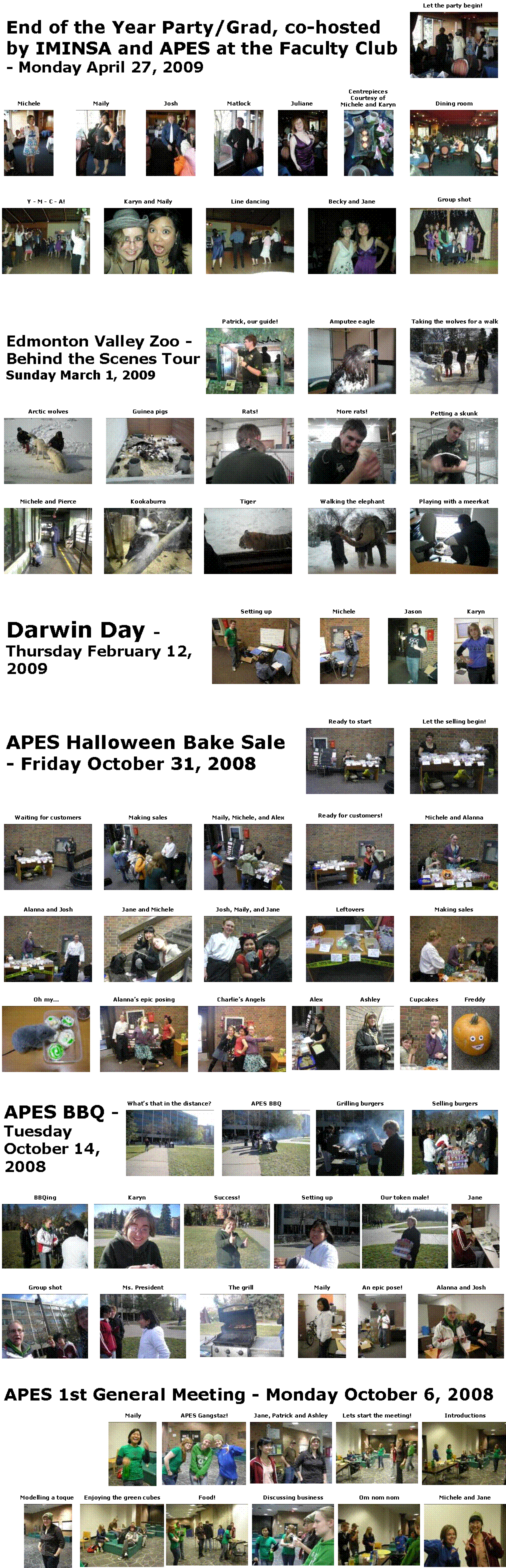 APES would like to extend a huge thank you to Joshua Torrance, president of the Immunology and Infection Students’ Association (IMINSA) for the 2008-2009 executive year. Without Josh’s hard work, events such as the end of the year party would not have been possible. Whether he was helping out with the BBQs, making baked goods for us to sell at our bake sales, or manning our t-shirt sale booths when no one else was available, Josh has been very involved with APES events and we greatly appreciate his contributions. Thanks Josh! <3 |
