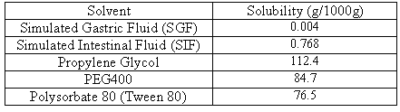 This table shows that the solubility of indomethacin can remarkably be improved in presence of propylene glycol.