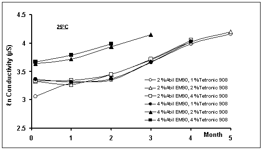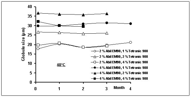 and 1 or 2% poloxamine 908 were the most stable systems. The globule size of