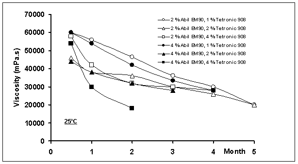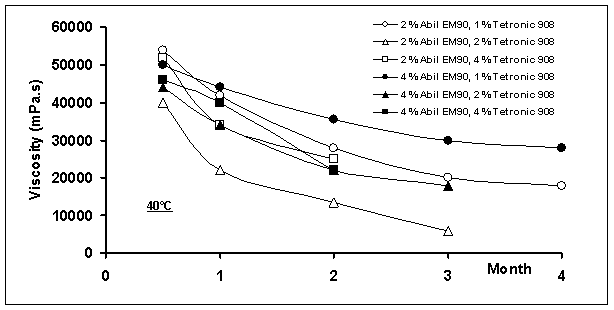 Increase in poloxamine 908 influenced the viscosity of the system, with the