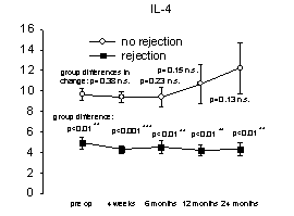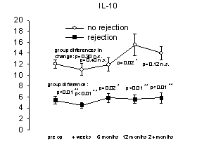 four weeks post-transplantation, cytokine patterns did not differ significantly