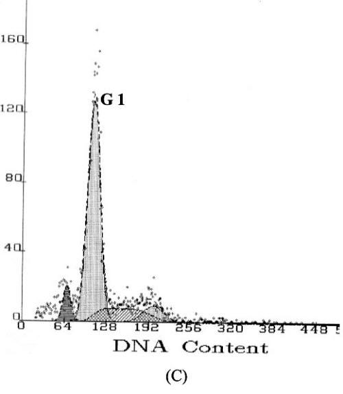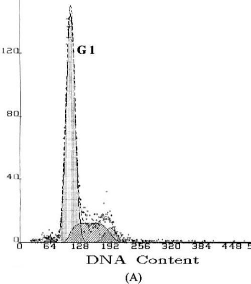 The formation of distinct DNA fragments is a biochemical hallmark of apoptosis, with internucleosomal DNA cleavage activity as a major characteristic (30). The normal metabolic cellular activities of the G1 period in cell division are in preparation for mitosis, including transcription, translation, and increase of cytoplasmic materials. The flow cytometry assay presented here suggests a possible association between methyl esters and cell cleavage arrest activity. As shown in Figure 4, the methyl ester extract apparently affected the proliferation of SGC-7901 cells by interfering with the progression of the SGC-7901 cells through the G1 phase of the cell cycle. When tumor cells are treated with methyl ester compounds, apoptotic cells with high DNA content in the treated groups apparently accumulate during the G1 period, in comparison with the PBS control (Figures 4C to E). As a result, the synthesis of proteins involved in transcriptional regulation and cell cycle control and the completion of the S and M phases are delayed, giving rise to a plethora of cellular effects, not least of which is potential activation of pathways leading to cell cycle arrest and apoptosis. The DNA fragmentation and DNA degradation in G1 phase were also observed when the human leukemic HL-60 cell line was treated with Genistein (16). It is thus assumed that the antiproliferative properties demonstrated by the methyl ester extract are attributed to their ability to penetrate the nucleus and interact with nuclear targets, leading to DNA degradation, unscheduled proliferation, and possibly latent DNA replication in dividing cell.
