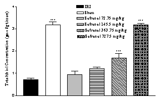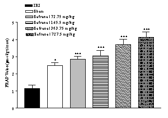 which saline solution was given intraperitoneally. In groups 3-6, safranal (727.5