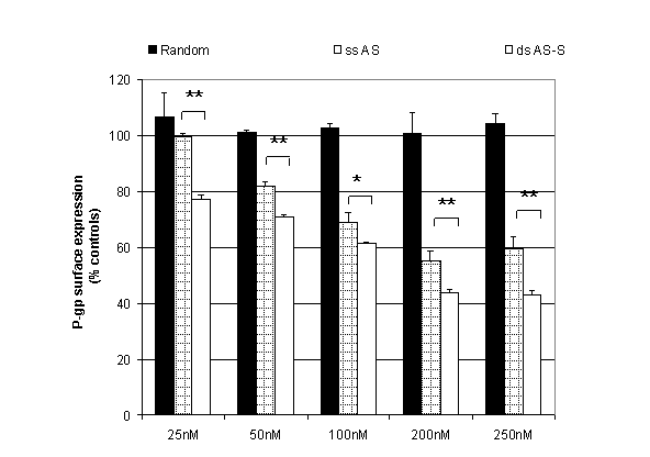 suppression of P-glycoprotein by antisense oligodeoxynucleotides (ODNs). To