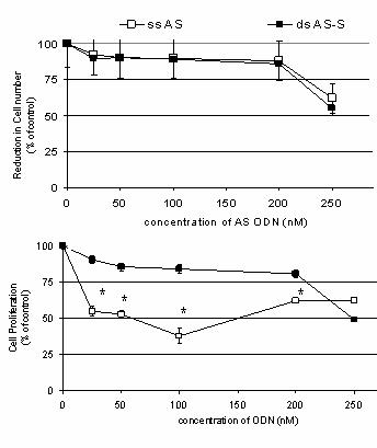 single-stranded in analogy to double-stranded siRNA. METHOD. Single-stranded phosphorothioate antisense ODNs against the