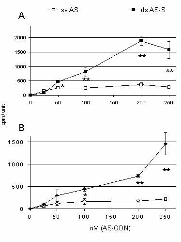 activity of double-stranded DNA based antisense ODNs. Recently, an enhanced cellular uptake of a