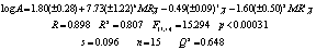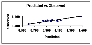 Figures 3 and 4 show the plots of the predicted vs. observed values with equation 8, and the graph of residuals vs. deleted residuals.