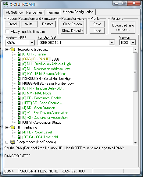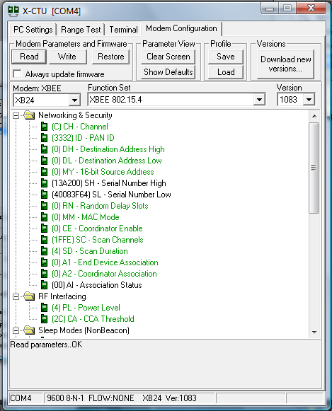 Click on 'Read'. You should get a listing of all of the settings that your XBee currently have and what you are able to change. Now that we already pre-determined the settings for each XBee, we can easily change the necessary fields.
