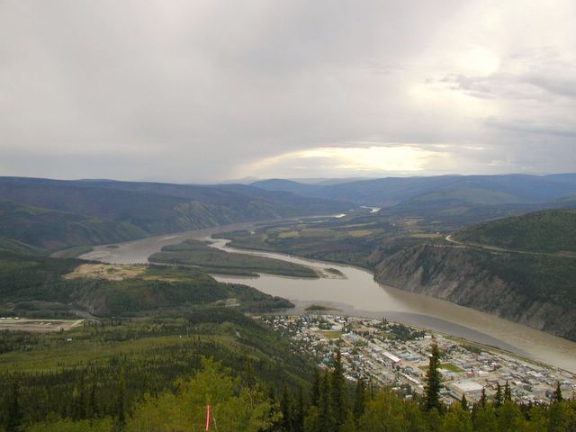 Web Version of Tephra Rush 2005 Photos -- looking south on Yukon River and Klondike River confluence