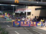 TV. During the parade, No. 100A Falun Gong practitioners'