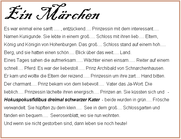 Put this text on the overhead and then have the kids lift up cards with -e and -en endings (they should be in a row so they cannot see each others cards). This is much more fun than just the usual worksheets with the endings missing). I added a third card with a "?" for another ending (this story had just one). On top of that: The students are