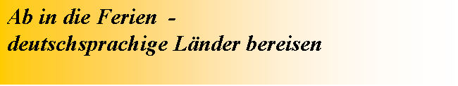 ![]() In Europa beginnt im Sommer jedes Jahr die alljährliche Völkerwanderung. Von Norden nach Süden und umgekehrt durchqueren die Urlaubshungrigen den Kontinent auf der Suche nach Entspannung, Unterhaltung oder beidem. Eine Unterrichtseinheit zu diesem Thema kann mit einer offenen Diskussion beginnen: Wie gestalten die Schüler und ihre Familien die schönsten Wochen des Jahres? Wurde schon einmal ein deutschsprachiges Land bereist? Welche Besonderheiten sind dabei aufgefallen? Nach dieser Vorentlastung lässt sich eine Online-Recherche zu den deutschsprachigen Urlaubsländern sehr sinnvoll anschließen. Ziele: